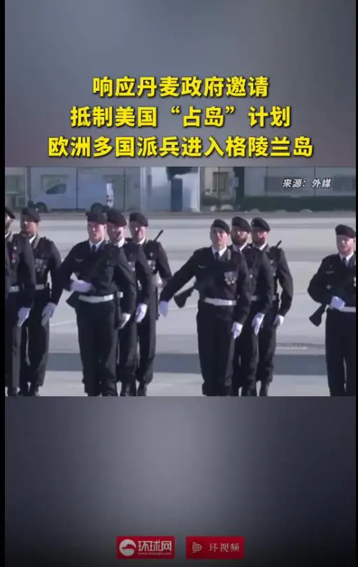 同一天,多国宣布应丹麦邀请,派遣部队赴格陵兰岛。美国有线电视新闻网(CNN)称,德国、瑞典、法国和挪威均已确认本周向格陵兰岛派遣军事人员。法国总统马克龙15日对法国军队发表新年致辞时说,应丹麦方面邀请,首批法国士兵已抵达格陵兰岛,未来几天还会有更多法国士兵前往格陵兰岛。