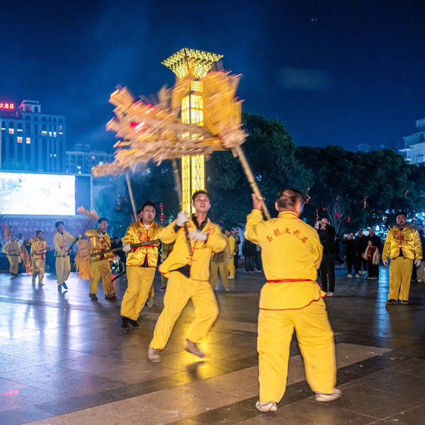 夜幕降临,钟山市民广场霓虹璀璨、人头攒动,处处洋溢着新春的喜庆氛围。来自该县石龙镇石龙村的舞龙队员们,正紧锣密鼓地做着准备,以竹篾为骨架、稻草扎制而成的香龙,周身插满了点燃的香枝,静待登场。骤然间,铿锵有力的锣鼓声划破夜空,通体燃香、火光熠熠的香龙从人海中腾跃而出,时而蜿蜒穿梭、时而昂首飞腾、时而盘旋起伏,将龙的灵动与威猛演绎得淋漓尽致,火红的光影奔涌入钟山的满城喜庆之中。