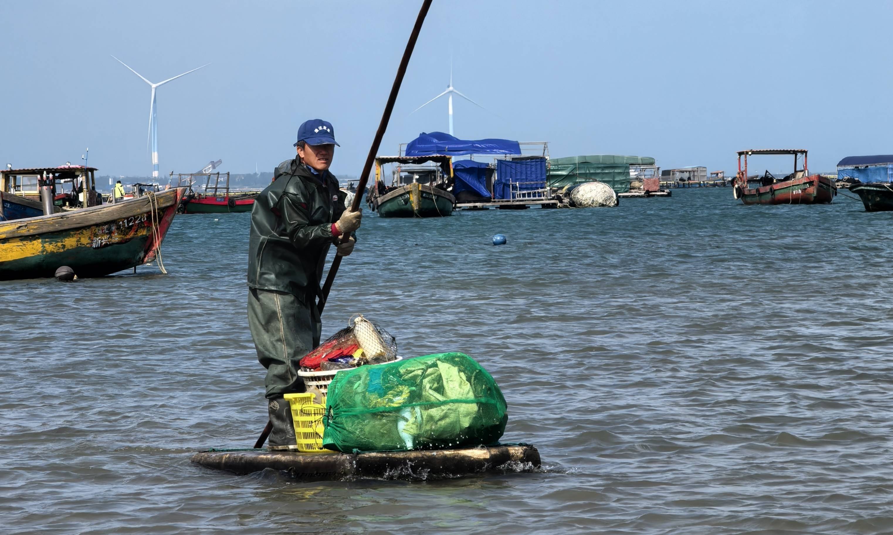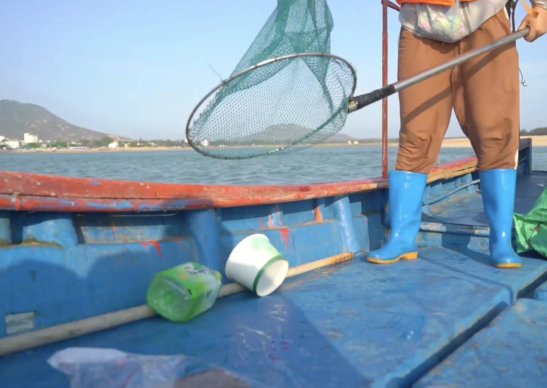 2003年,刚满20岁的钟强彬首次随父出海,没想到第一网收获的近半是塑料垃圾。在当地渔民的传统观念里,捞到的垃圾是“晦气”,会被直接扔回海里。