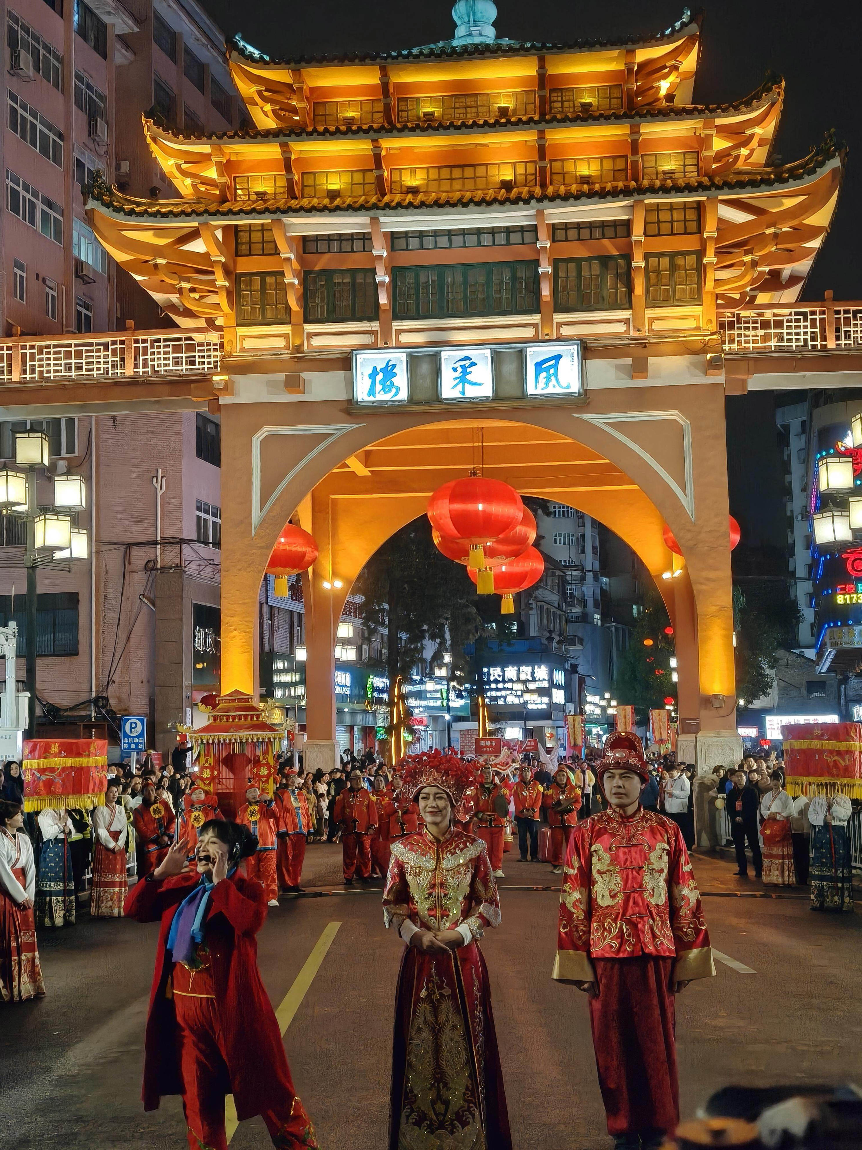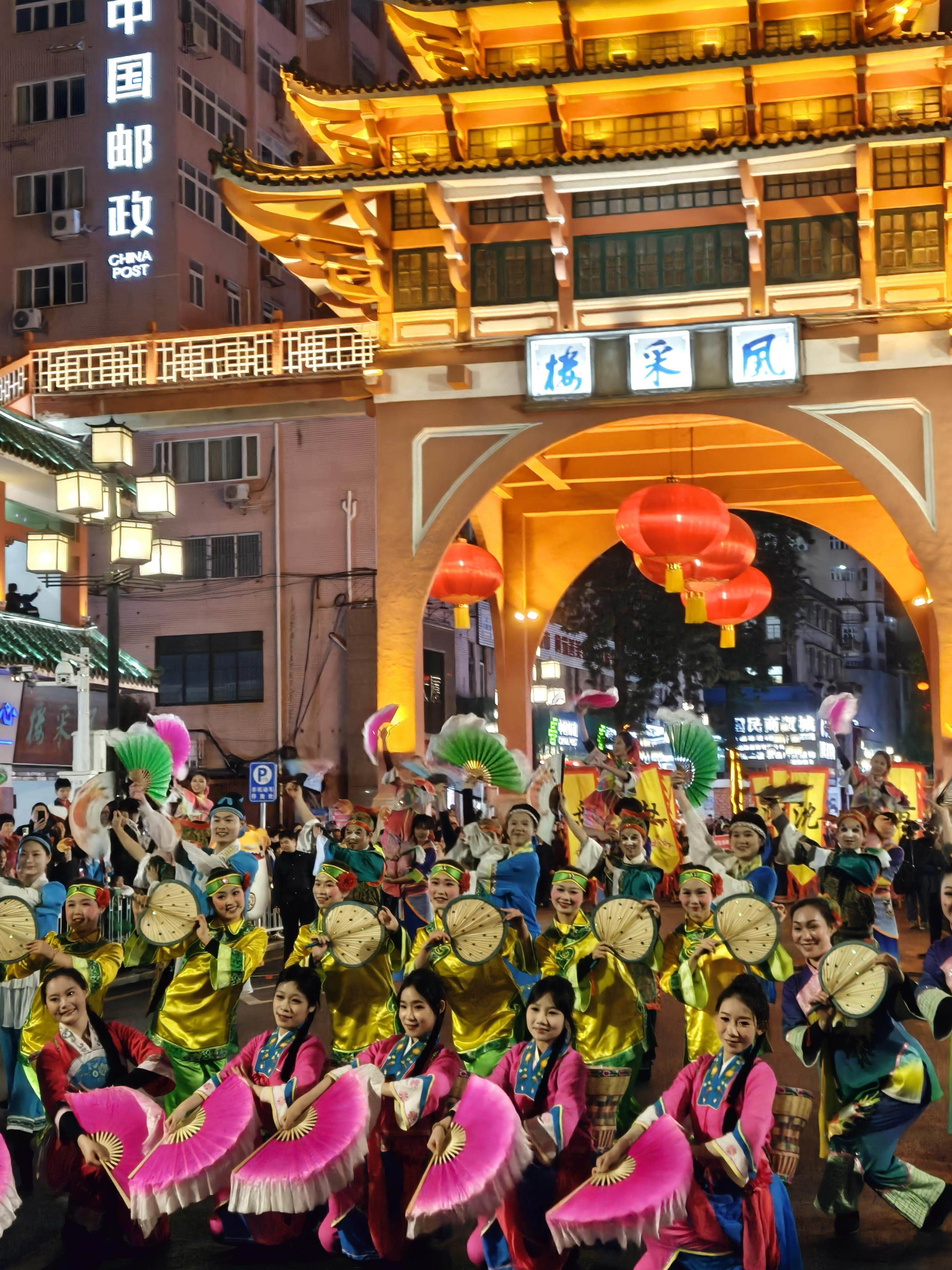 沿途在大文商场、风度广场、风采楼、百年东街婚庆广场四大定点区域设置展演点位,形成“行进式巡游+定点式展演”相结合的立体呈现方式。
