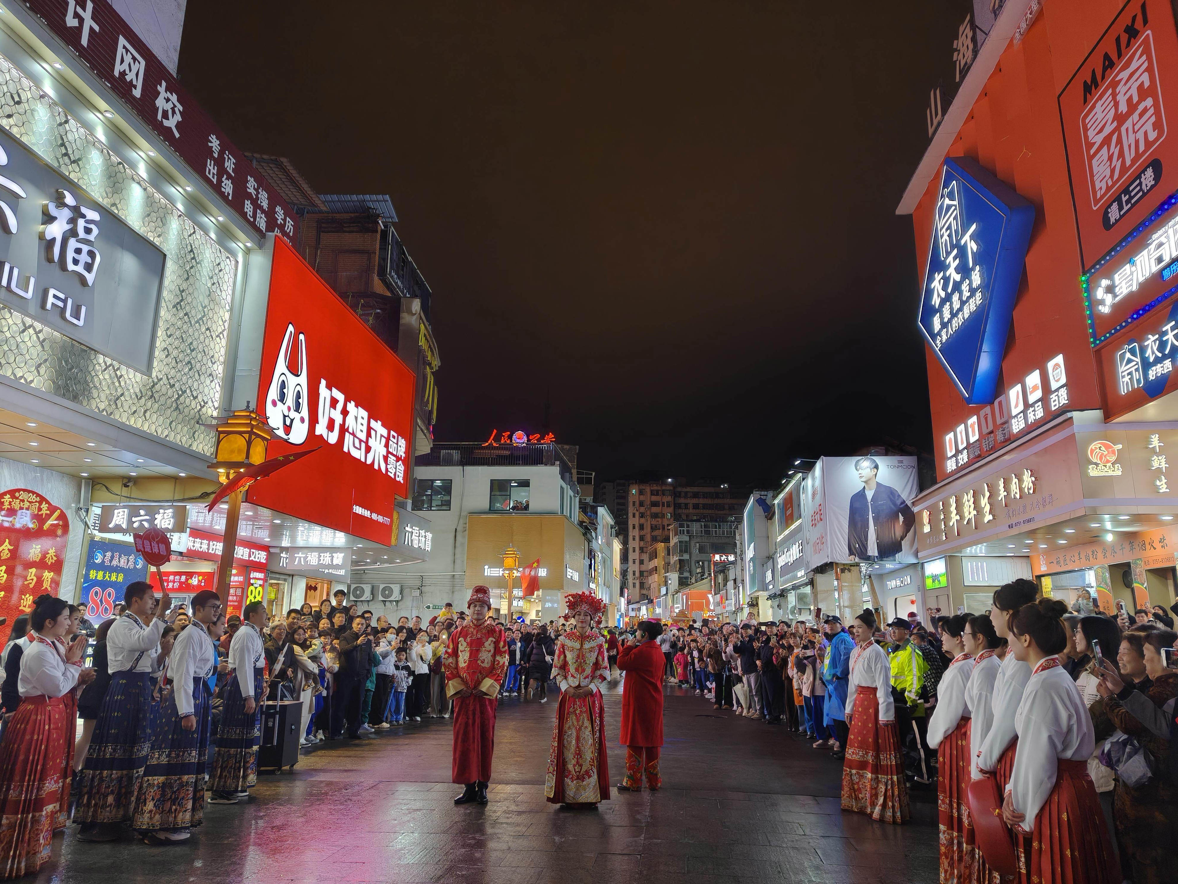 巡游于当天20时从中山公园门口启幕,途经解放路口、陆羽茶庄、步行街和平路口等核心路段,最终抵达百年东街婚庆广场,全程约2.1公里,历时2小时。