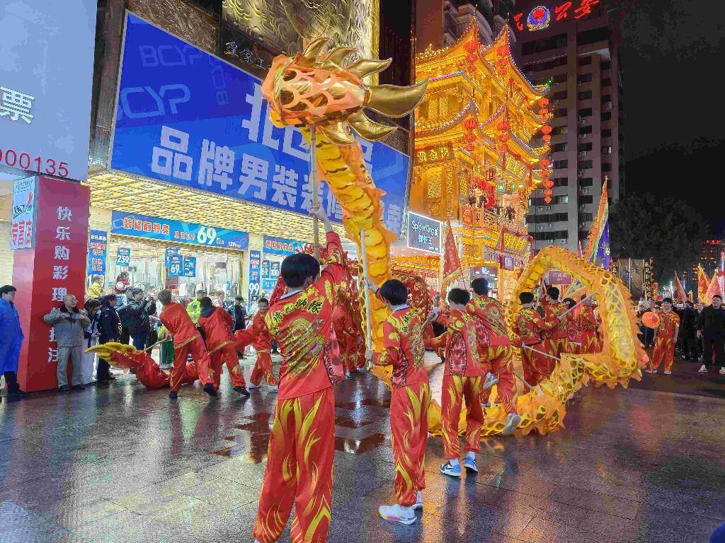 尤其在风度广场、风采楼、百年东街婚庆广场等地标性节点,主办方精心编排具有视觉冲击力和互动体验感的节目,将非遗与城市夜景融为一体,营造出喜庆祥和、热烈欢腾的节日氛围,吸引十余万名市民游客驻足观赏、拍照打卡,整座城市沉浸在浓浓的元宵喜庆之中。