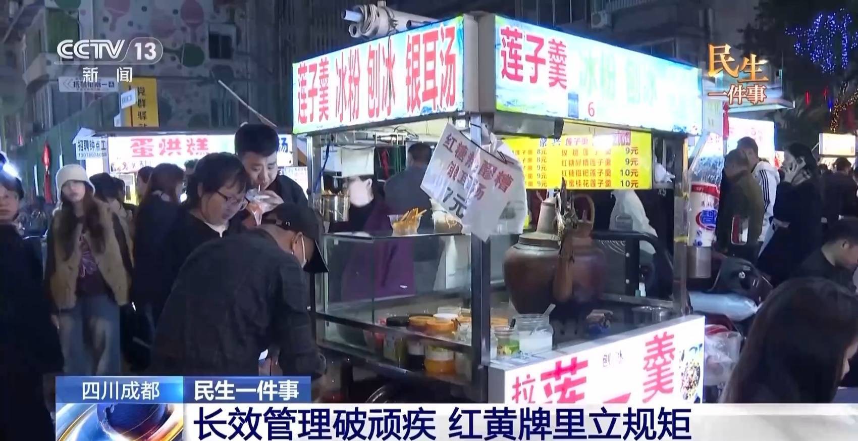 同时,夜市逐步完善经营公约,建立“红黄牌”管理制度。出现卫生等问题,给予黄牌警告;超时经营、食品安全或诚信经营被投诉,直接红牌警告、停业整顿,3次红牌则清退出市场。