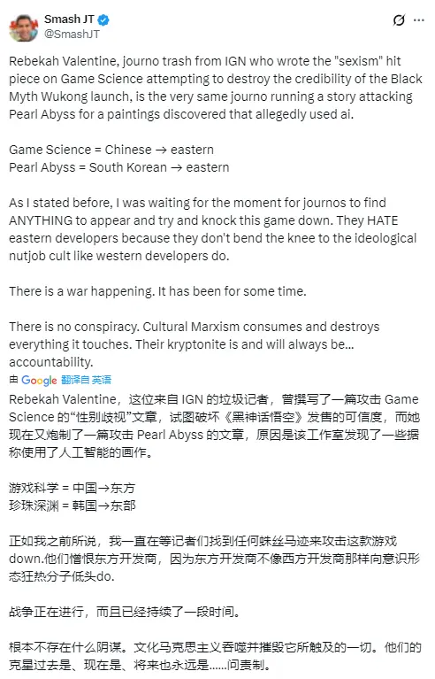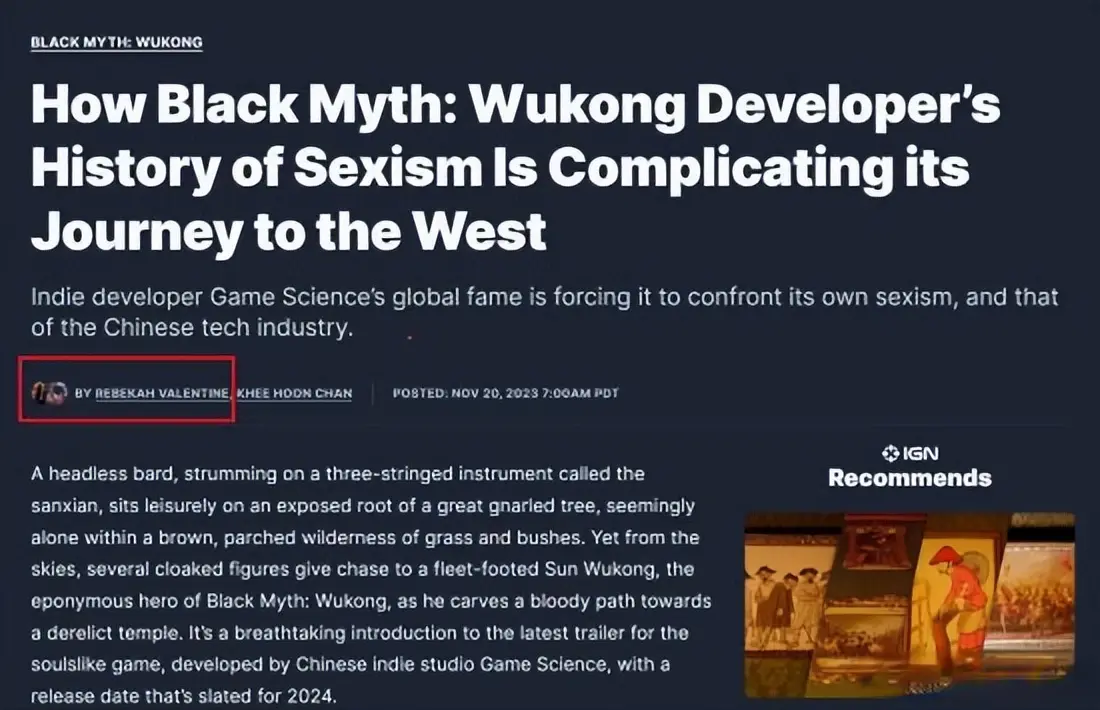 这位记者曾经参与撰写过关于《黑神话:悟空》开发商 游戏科学 的争议报道——当时的关键词是“性别歧视”。