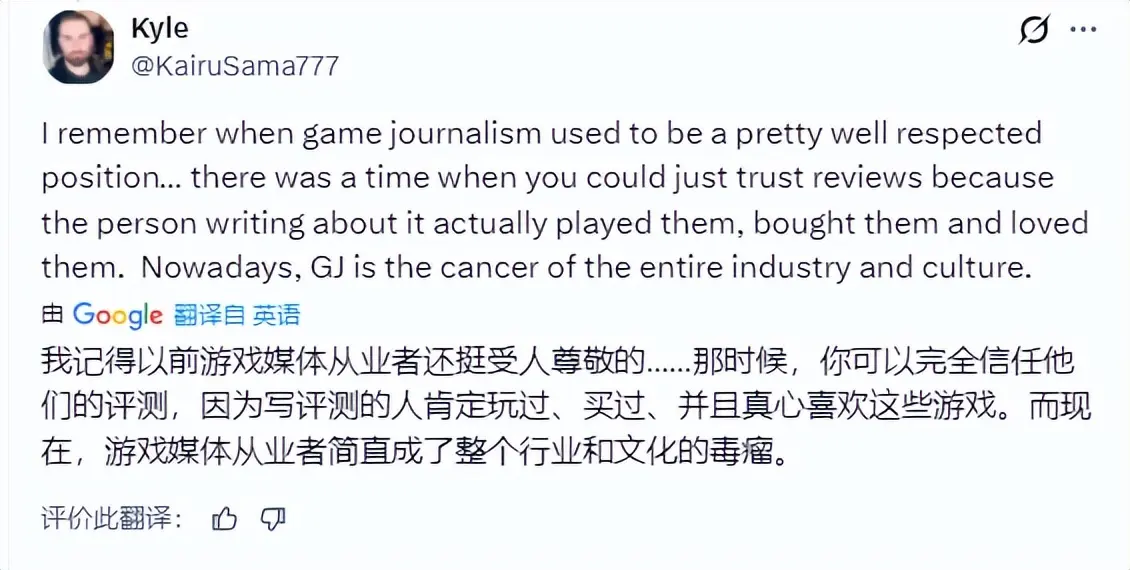 有网友就表示很失望,以前的游戏媒体从业者是很受人尊敬的,那时候你可以无条件的相信他们的评测,因为他们是喜欢游戏的。而如今游戏媒体从业者简直就是这个行业的毒瘤,他们不玩游戏,就只会弄各种舆论价值。