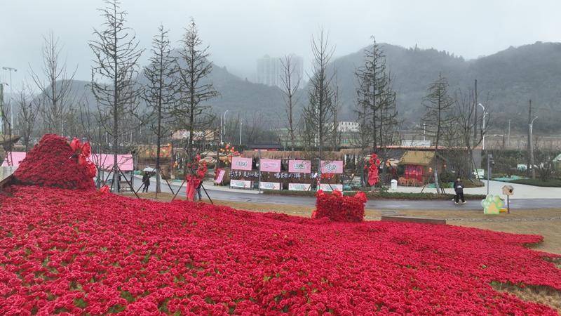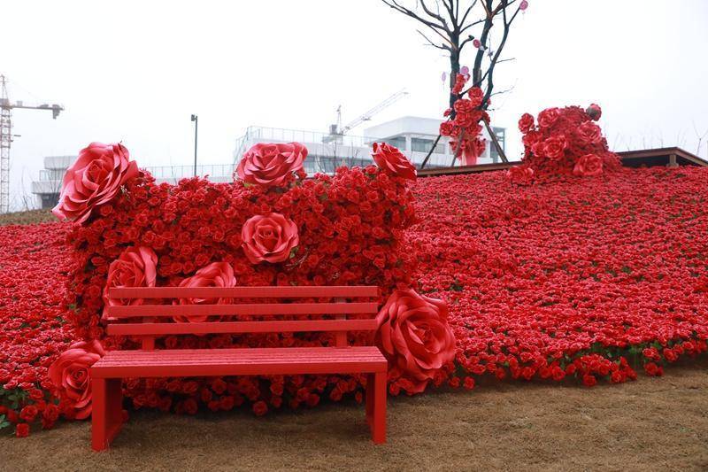 现场精心布置了10万朵绚烂“玫瑰”,形成一片壮观的花海,为新年增添了第一份隆重而浪漫的仪式感。游客穿行其间,仿佛步入画卷,每一步皆是风景,成为拍摄新春全家福或个人写真的绝佳背景。穿过热烈的玫瑰园,一片静谧的森系秘境豁然展现。树影、草地、秋千、木栈道……让人恍若踏入童话之境,为家庭与朋友提供了静坐畅谈、放松身心的天然氧吧。