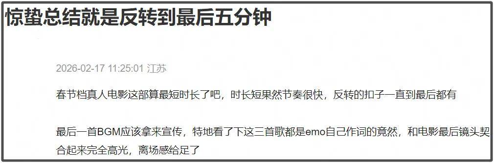 《惊蛰无声》集齐各个年龄段的顶流,按理来说应该很吸引观众,但口碑却两极分化相当明显。光从影片BGM来看,一会儿有人说BGM很适配,恰到好处。